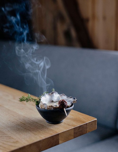 That’s why Holmen Lofoten’s restaurant menu features such remarkable, eye-catching culinary experiments as oyster, goat sausage, and pickled rhubarb, or sea urchin, fermented plum, green juniper, and fig leaf.