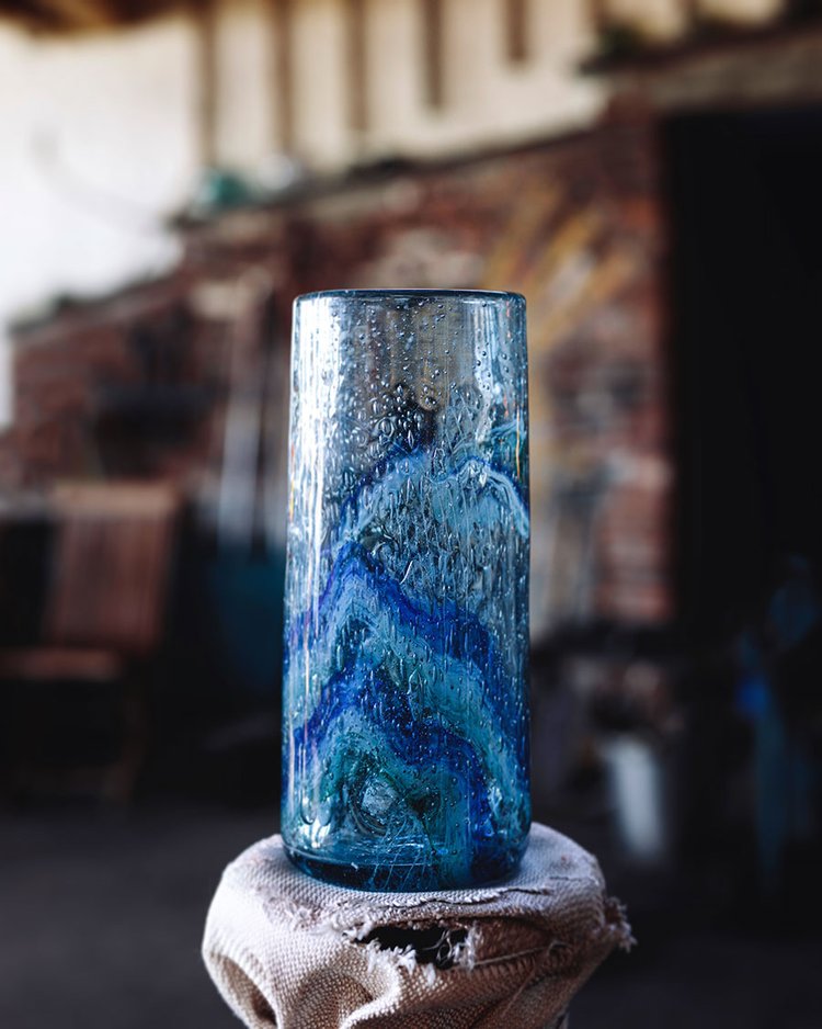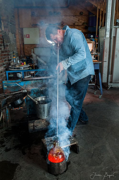 “The craft stems from ancient Egypt and Syria, but the principles remain the same. We melt the glass at 1200°C in a crucible. Then, decorations and colours are added to one of the first glass spheres. Once cooled, you add more hot glass, so the decorations and colours lie between several layers of glass. Then you blow the glass into different shapes, using a range of different methods. There are limitless possibilities.”