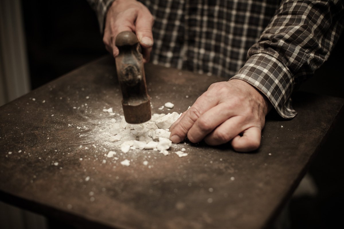 Some of Glasshytta’s products are made using a white quartz that can be found in the ancient bedrock of the nearby mountains. “We break down the quartz and roll it into hot glass,” Anders explains. “The quartz lies in the glass as a decoration and gives a very special effect. We’re not interested in making the glass as thin or smooth as possible. We’re looking to express something rawer.” This expression can be seen in the sea green colour and use of bubbles and textures in Glasshytta’s products.