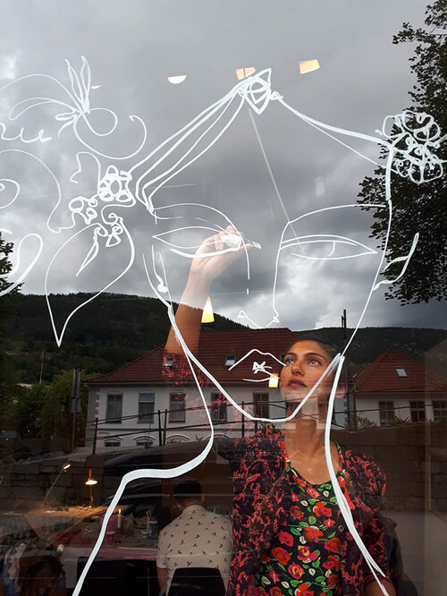 Gurdish also works with window displays, something that started once she arrived in Bergen. “Marks behave differently when light shines differently.” She likes how the sun and the shadows come into play, and she loves that it’s a surface you can explore by seeing it from the inside as well as outside.