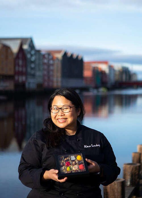 Alma Sundøy is a chocolatier and a former pastry chef who comes from Singapore. She founded Trondheim Sjokolade, a company that creates chocolate products inspired by desserts and pastries. Her chocolate creations have won several awards and she has worked with some of the world’s best chocolate makers.